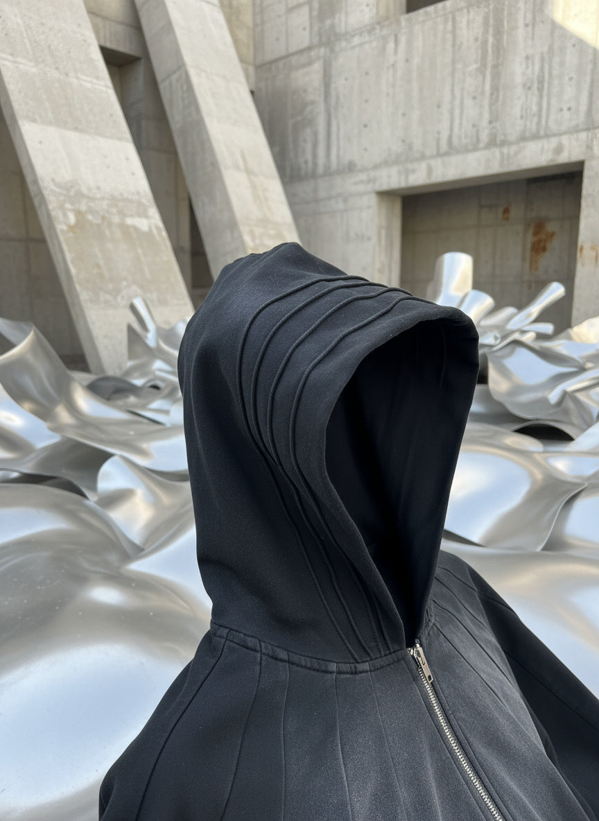 The hood conceals an embroidered eye—hidden until revealed—adding depth to a piece that thrives on subtle discovery. Structured without bulk and sealed with a quiet sleeve logo, this is essential gear, elevated.